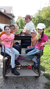 Anschließend dürfen die Kinder helfen, die Ponys zu putzen und für die Kutschfahrt fertig zu machen. Danach fahren wir zusammen eine große Runde bei 4-5 Kindern (ca. 45 min) über die Härten. Bei 5-8 Kindern fahren wir 2 kleinere Runden (je ca. 20-25 min).